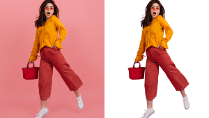 perky-girl-stylish-glasses-stares-amazement-walking-pink-wall-brunette-culottes-orange-blouse-posing-with-red-handbag | Photo Editing | Photo Clipping Path BD